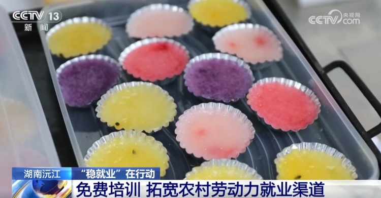 在湖南沅江人社局定期举办的免费职业技能培训班上,学员们正在学习蛋糕制作。
