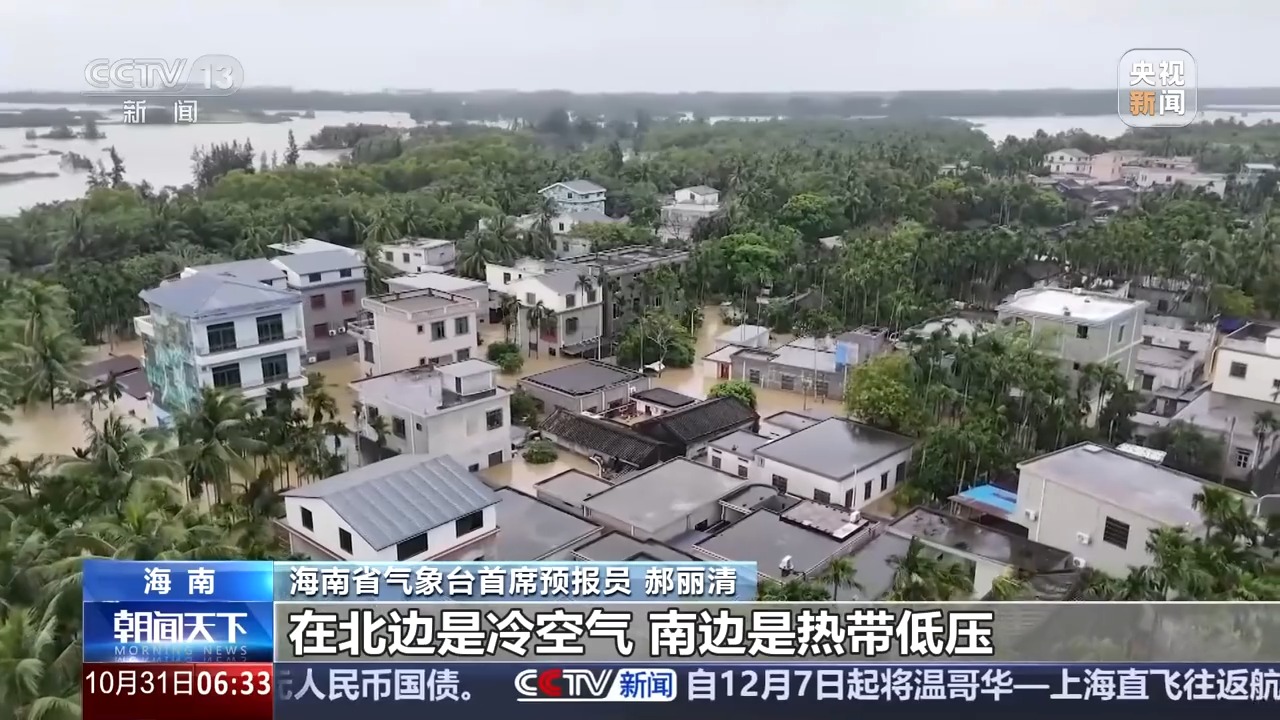海南省气象台首席预报员 郝丽清:往年的话,秋季也是有很多这种暴雨。在北边是冷空气,南边是热带低压或者热带台风的残涡,这次也是典型的秋季暴雨形势。但是这一次“潭美”台风登陆减弱之后,又过了一天才下这种暴雨,前后两个过程的雨量、影响都叠加了。再加上天文潮这类非大气的因素,造成了比较大的影响。