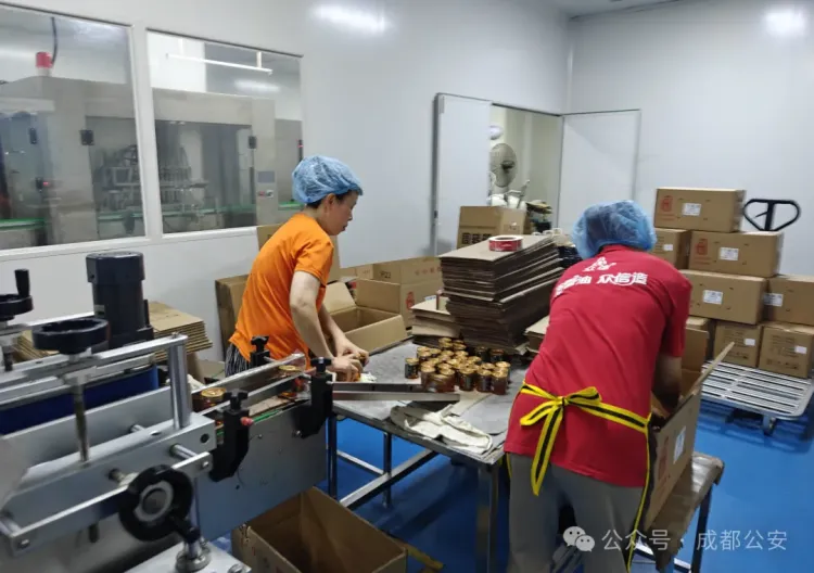 根据前期掌握的制假售假线索,龙泉驿区公安分局在市局食药环侦支队的指导下成立专案组。专案组民警立足成都食药环侦情报研判中心,通过对视频侦查、货运轨迹、资金流向进行研判,对市场上的假冒品牌火锅调和油来源进行追踪,锁定了位于成都、重庆的4处生产假冒“某某坎”“某某侠”注册商标产品的工厂。同时,对涉案火锅调和油的商标标识、图案设计源头进一步深挖,又浮现出3处涉嫌侵犯著作权犯罪的设计、印刷窝点。