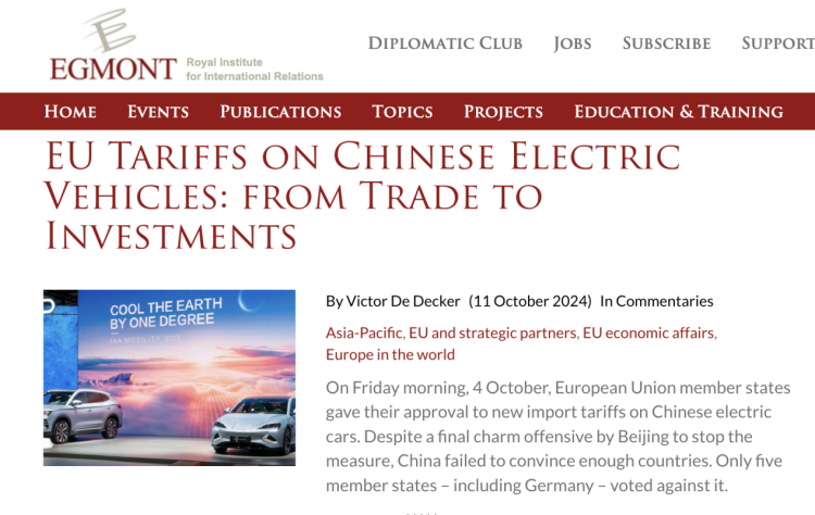 △德德克10月11日文章《欧盟对中国电动汽车的关税:从贸易到投资》截图