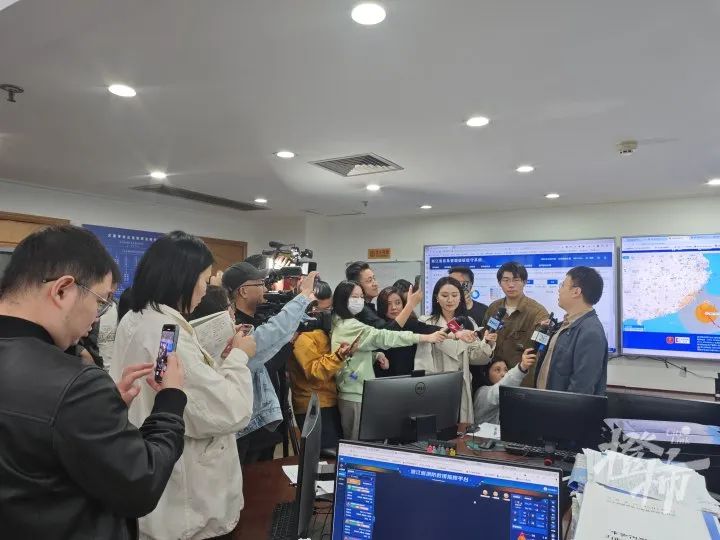 10月31日下午,浙江省应急管理厅指挥中心举办新闻通气会。