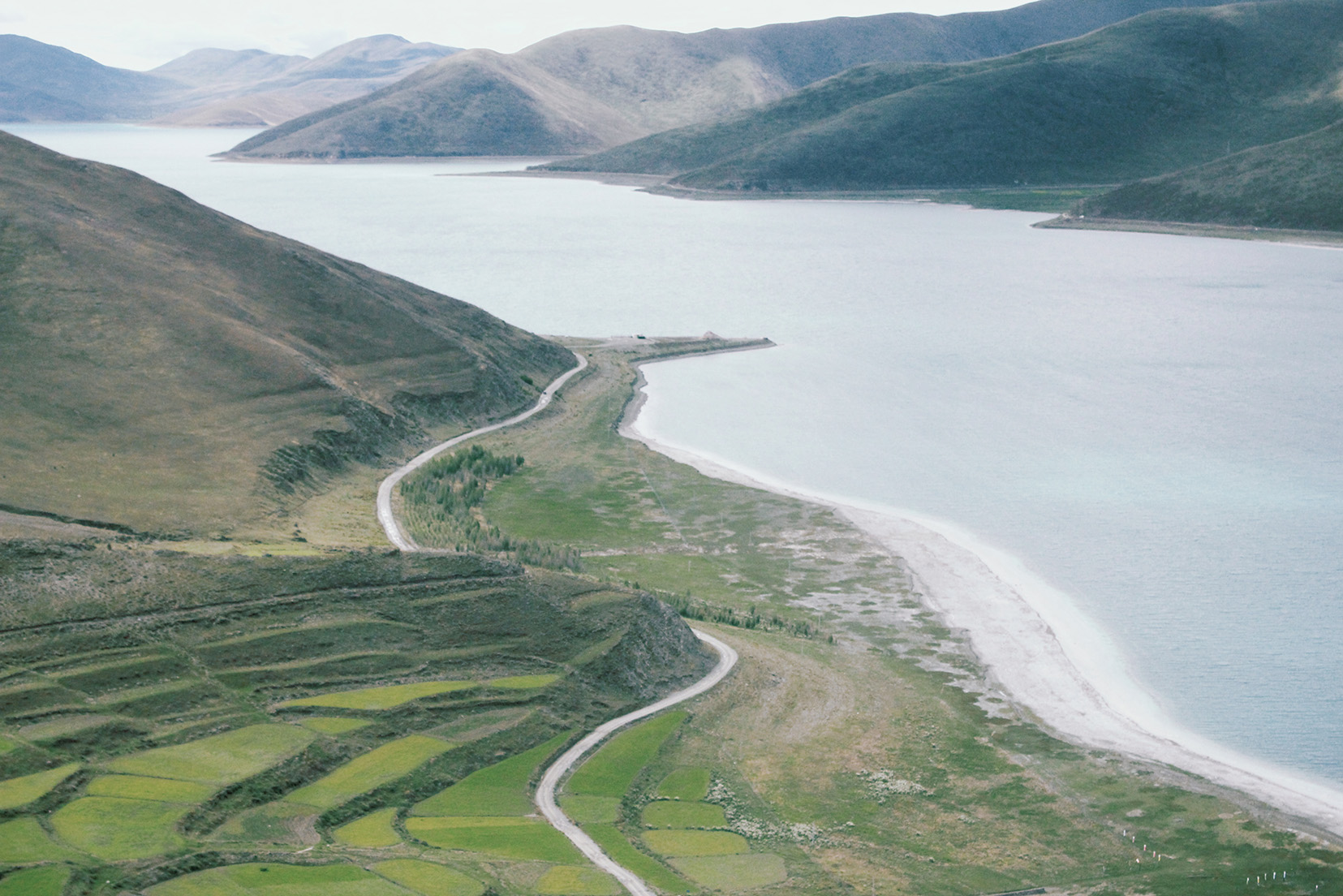 青藏高原的山脉连绵不绝,苍茫的天际与大地在这里交汇。远处的雪山屹立在蓝天白云下,仿佛时光在此凝固。而蜿蜒的河流则如丝带般环绕着山脉,静谧而温柔,给这片壮丽的土地增添了一份灵动。