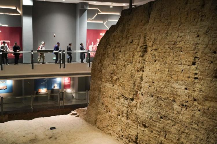 游客在西安唐皇城墙含光门遗址博物馆内参观。新华社记者 邵瑞 摄