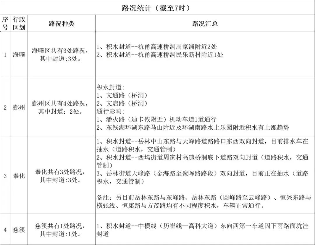 备注:另目前岳林东路与东峰路、岳林东路(圆峰路至云峰路)、恒兴东路与横张线、恒康路与方茂路均有不同程度积水,车辆正常通行。