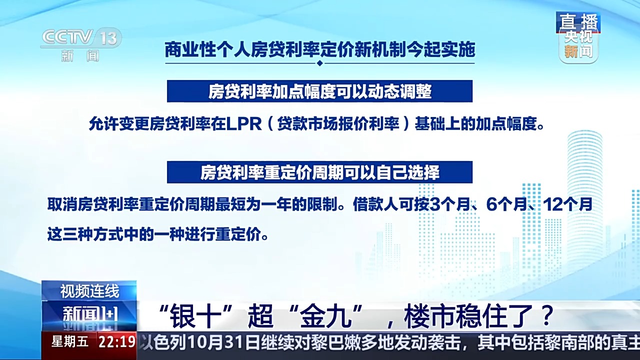 清华大学房地产研究中心主任 吴璟:浮动利率的机制下,存量房的贷款利率由LPR和加点幅度两部分组成。今天对两个部分的调整机制都做了一些重新规定。总的来讲,我想它们共同的目标是使得存量放贷的利率,更贴近于当前的贷款市场利率。可能有一部分的购房者总是在担心说,我如果买完房以后,利率又下降了,我会不会“踏空”,甚至会因此而观望,那么这样的机制就可以给他们吃一个“定心丸”,也就是说即使买完房,不管是LPR调整,还是加价幅度调整,你也可以享受到这种政策红利,而且是会尽快享受到。