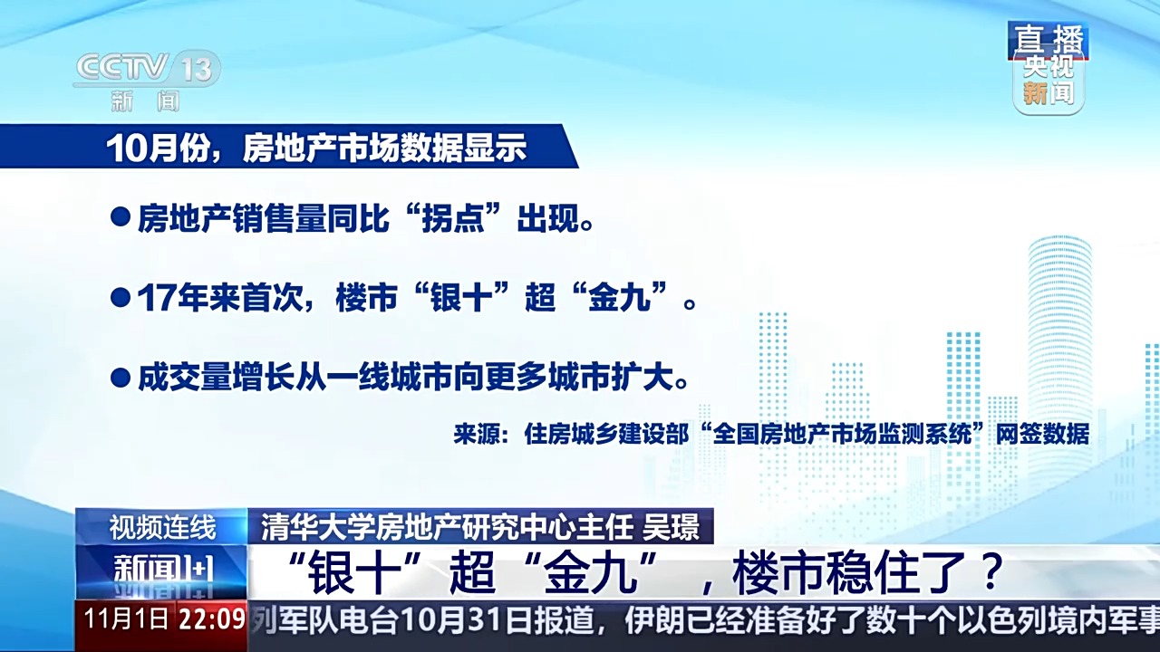 清华大学房地产研究中心主任 吴璟:房地产市场尤其是住房市场,有着很强的季节性,因此传统上很少会出现10月份的成交量超过9月份的情况。我觉得10月份的成交量出现环比增长,一方面当然是因为我们在过去一段时间里出台的很多具体的政策,释放了有针对性的特定需求,比如说一线城市限购政策的调整,甚至是取消,释放了部分此前没有资格购房人群的需求。首付款的下降,也帮助此前部分交不起首付款的,特别是年轻人能够开始购房。与此同时,我觉得同样重要的,甚至可能更重要的是,在9月26日的中央政治局会议明确提出了促进房地产市场止跌回稳,它释放出了一个非常强烈的政策信号,可以说在市场中起到了比较强的提振信心的作用。相当一部分改善需求,甚至是首次置业的家庭,此前可能因为信心不足,处于观望状态,这样的信号对于提振信心,释放这部分需求还是发挥了很大的作用。