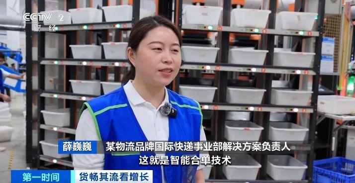 某物流品牌国际快递事业部解决方案负责人 薛巍巍:不同店铺的五个包裹,一次性送到客户手中,这就是智能合单技术。