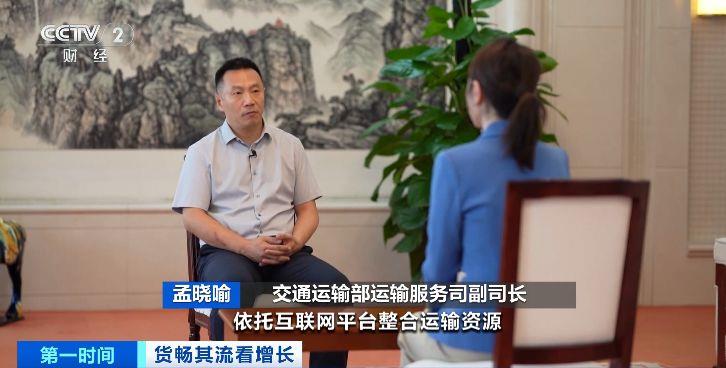 交通运输部运输服务司副司长 孟晓喻:近年来,网络货运依托互联网平台整合运输资源,实现车货精准匹配,运输组织效率大幅提高。相比传统运输方式,网络货运平均等货时间由2到3天缩短至8到10小时,交易成本下降约6%到8%。