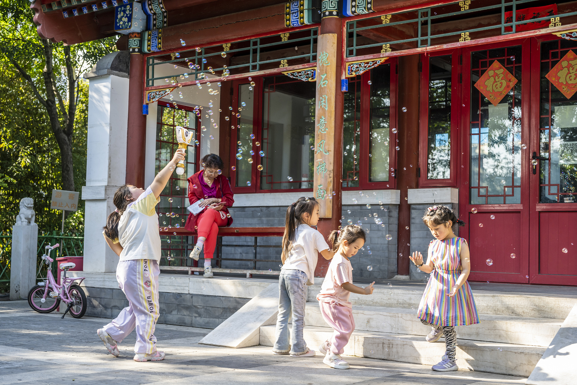 北京:孩子们在胡同里的“口袋公园”内玩耍