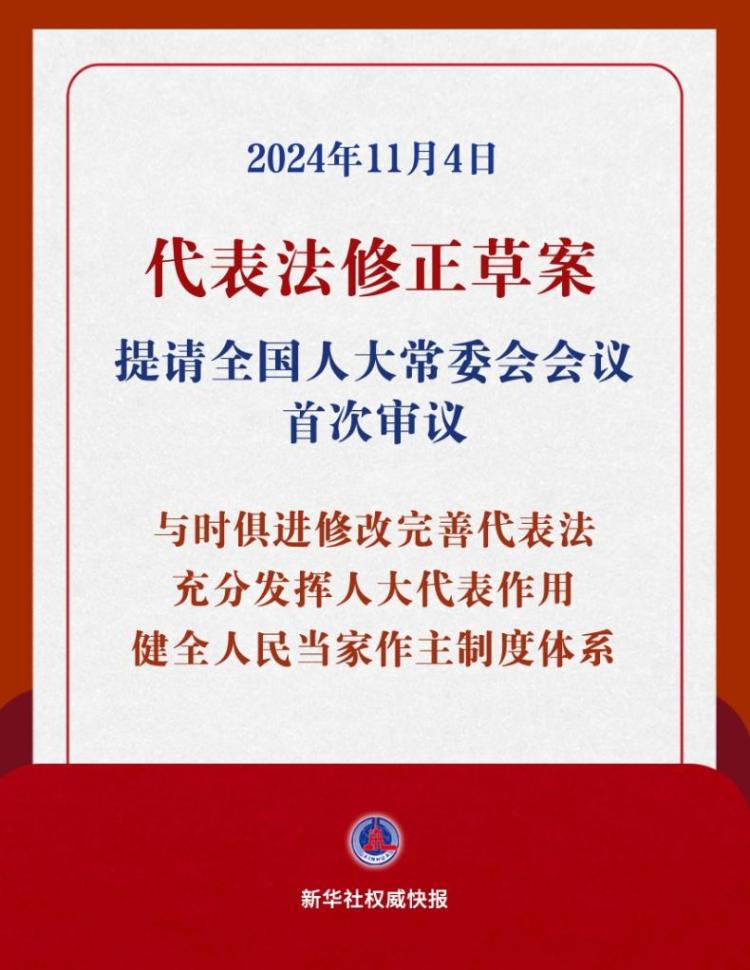 《中华人民共和国全国人民代表大会和地方各级人民代表大会代表法(修正草案)》11月4日提请十四届全国人大常委会第十二次会议首次审议,这是该法自1992年通过施行以来第四次进行修改。代表法修正草案的主要内容包括:充实总则部分规定,拓展和深化“两个联系”制度机制,完善人大代表工作能力建设有关规定,完善代表在本级人民代表大会会议期间的工作有关规定,完善代表在本级人民代表大会闭会期间的活动有关规定,完善代表执行职务的保障有关规定,完善代表议案、建议办理机制,完善代表履职监督管理有关规定,适应监察体制改革需要补充相关内容。