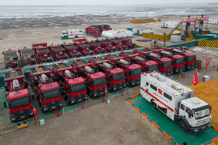 在大庆油田第七采油厂,多个存储着液态二氧化碳的白色罐体依次排列,工作人员按下按钮向地下注入二氧化碳……这里正在进行致密油二氧化碳蓄能压裂技术试验,以解决致密油层的开采难题。