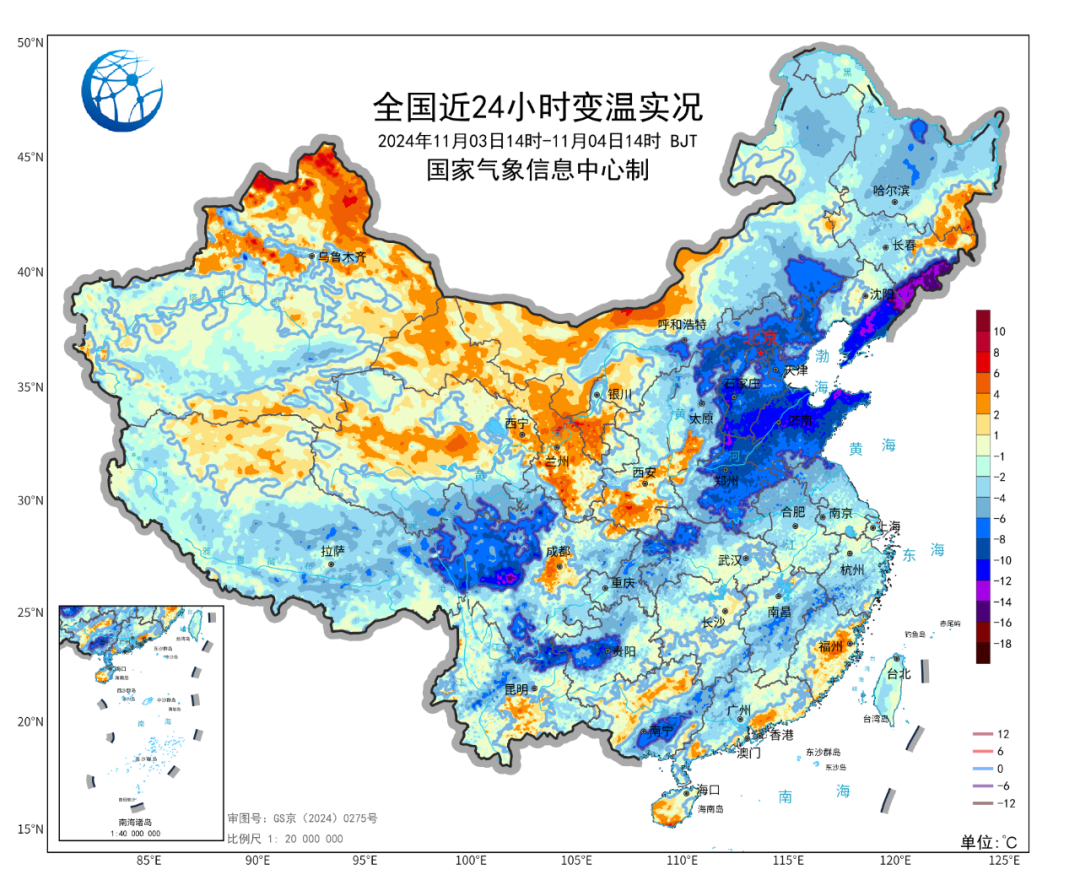昨天(11月3日)开始,新一股强劲的冷空气已经登场,今天它还在继续东移南下,给中东部地区带来了明显的降温。
