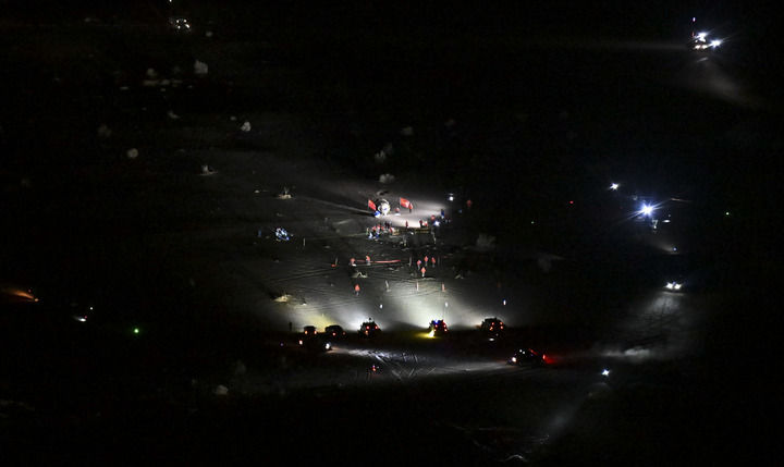 2024年11月4日,神舟十八号载人飞船返回舱在东风着陆场着陆。新华社记者 连振 摄