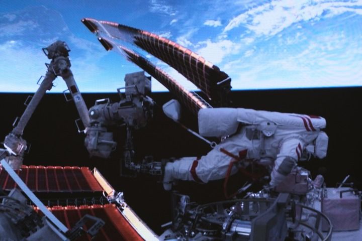 2024年11月4日,神舟十八号航天员李聪安全顺利出舱。新华社记者 李志鹏 摄