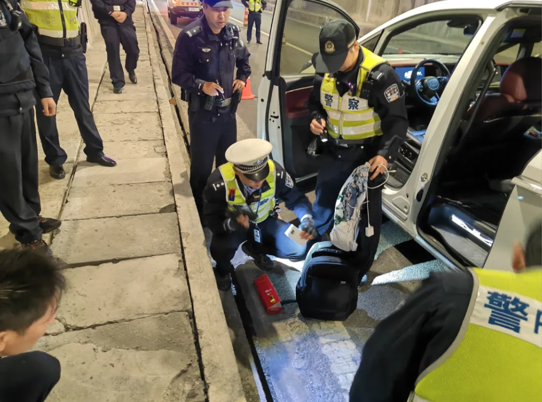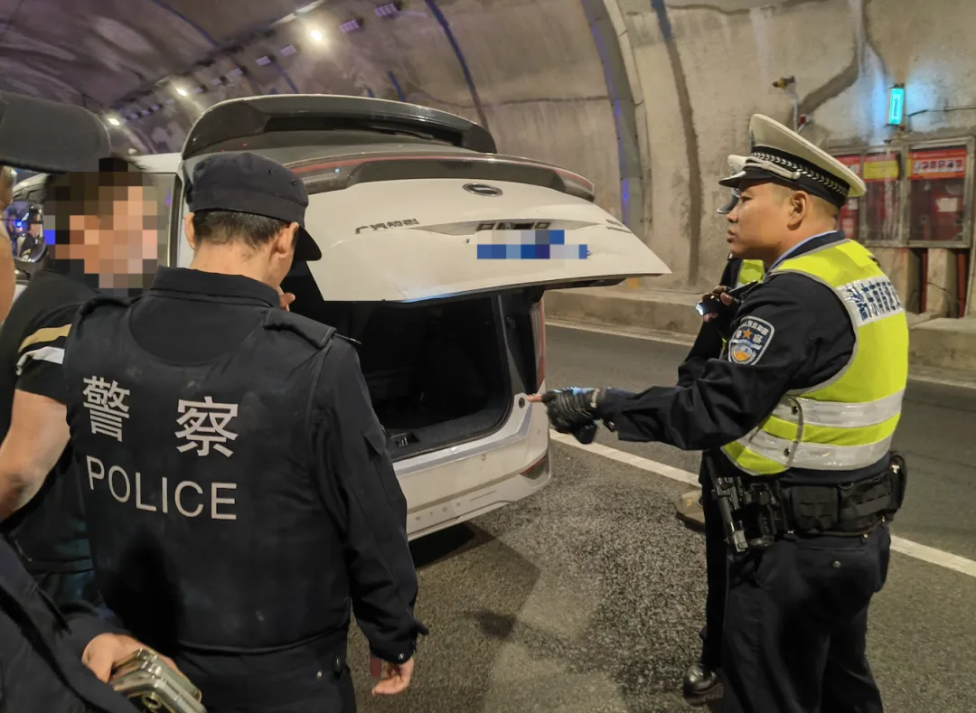 经过与A组对讲机汇报,发现嫌疑车辆已经往肇兴隧道方向行驶后,A组警力悄悄尾随嫌疑车辆至拦截地点。