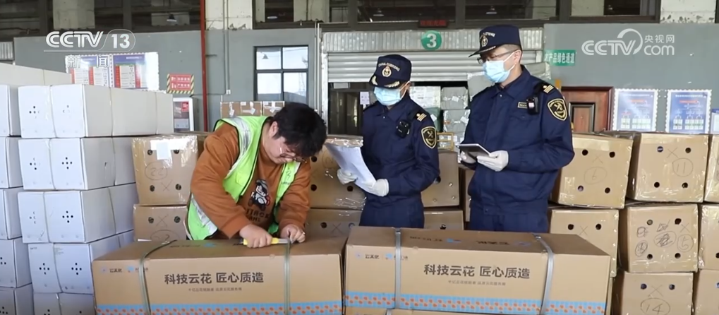 在云南昆明长水国际机场的查验现场,一箱箱玫瑰、康乃馨、百合等鲜切花花团锦簇、香味扑鼻,海关关员正对其出口监管验放。据悉,这批中国产的花卉准备搭乘国际航班出口至海外市场。