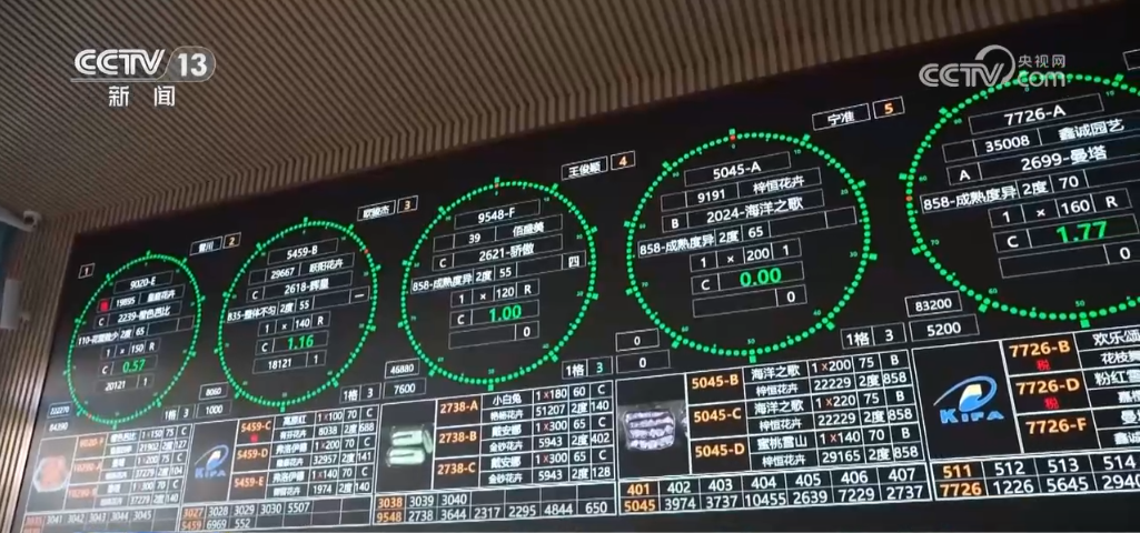 记者来到北京花卉产业数据中心,身后这块大屏不断翻滚和更新的数据就是为花卉服务的。这块大屏不断旋转的六个圆盘就相当于六个买手。也就是说,不用出北京,就可以和远在2000多公里的昆明实现同时拍卖和同时交易。