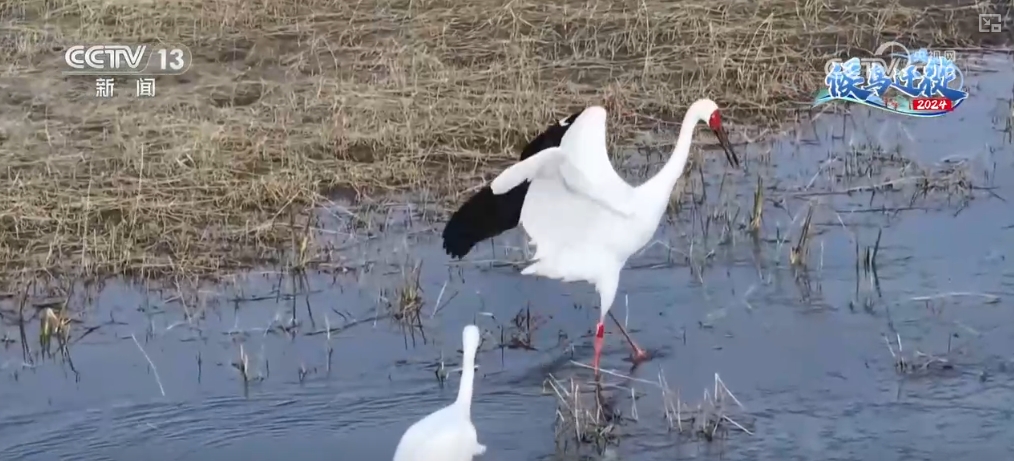鄱阳湖的“老朋友”白鹤最近也来了,就在3天前,鄱阳湖保护区就监测到39只白鹤抵达鄱阳湖。这是2024年鄱阳湖候鸟越冬期以来,鄱阳湖保护区内记录到的首批越冬白鹤。其中,还有4只幼鸟,较2023年抵达时间提前两天,数量多一倍。而大家最关注的白鹤小雪据监测目前还在吉林境内。