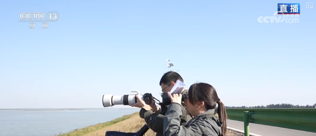 他们一般是使用光学望远镜搭配空中无人机长焦镜头,实现天地配合进行监测。工作人员两两配合,需要在短时间内尽可能精准地记录到目框内的鸟群数量及品类。如何快速辨别候鸟的品种,靠的就是工作人员强大的记忆力。