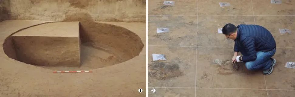 △考古专家对粮仓底部遗存进行取样