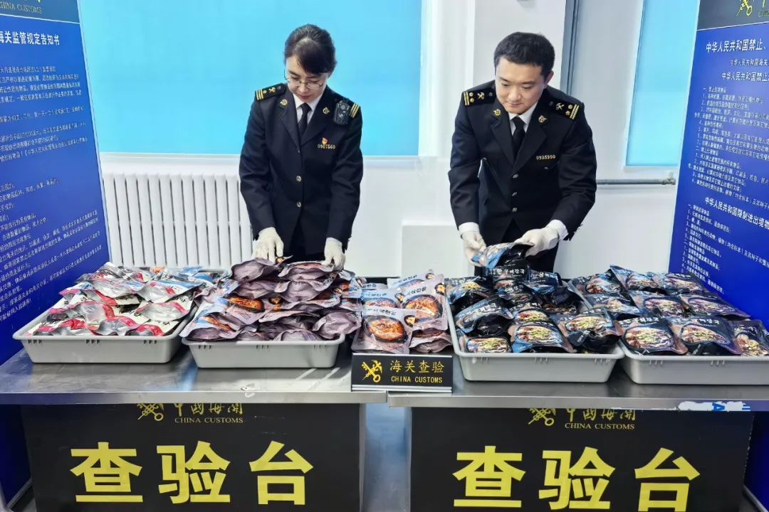 近日,大连港湾海关在对进境旅客进行监管时,发现一名选择无申报通道通关的旅客行李机检图像存在异常。经开箱查验,海关关员在该名旅客携带行李箱中查获大量塑封包装的肉类制品,共有140袋,总重约99公斤。