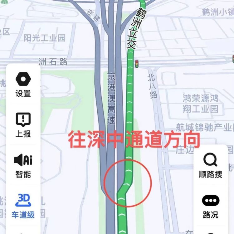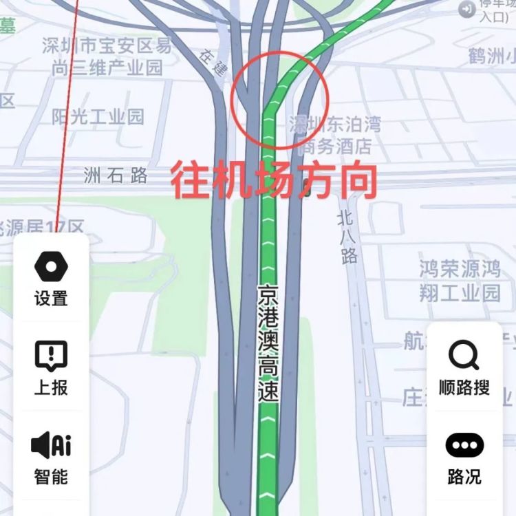 自驾从广深高速往机场方向行驶的驾驶员请注意,此处路段有两个匝道口,往深中通道方向 的在前 ,往机场方向 的在后 。途经此处时,请按路标或按导航行驶,提前做好变道准备。