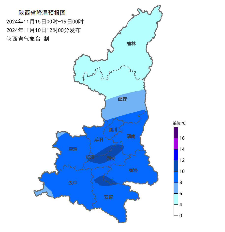 16-20日过程日平均气温下降5~8℃。最低气温出现在20日清晨,平原地区最低气温降至0~2℃,秦岭高海拔山区降至-3~0℃,南部山区部分地方有霜冻。