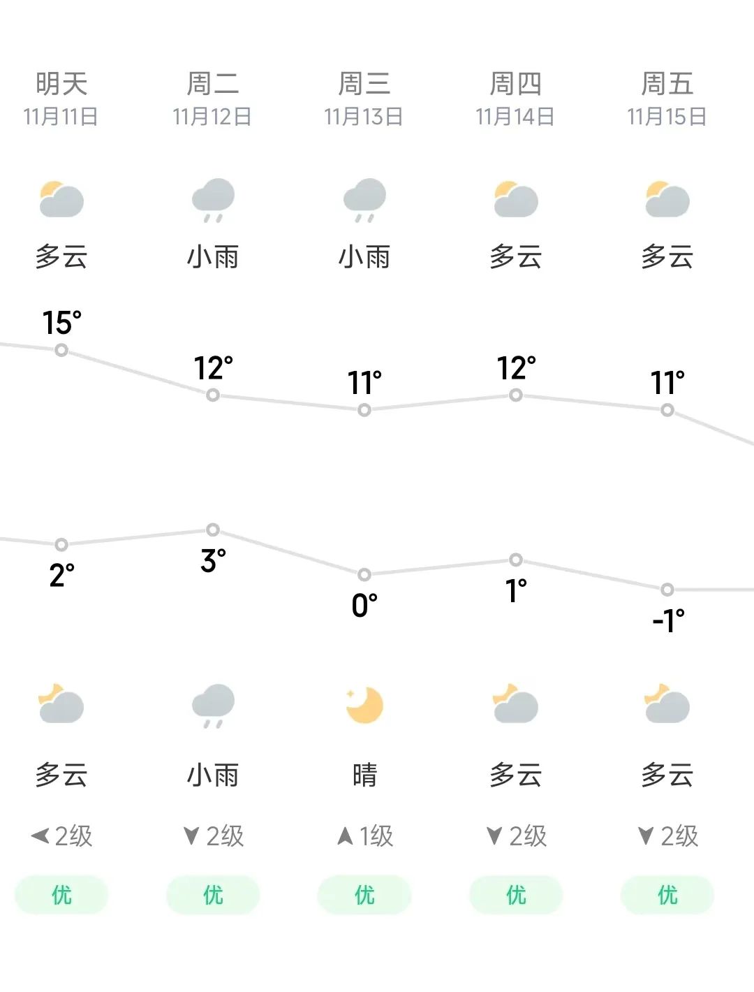 11日白天,固原市多云转阴有小雨或雨夹雪(0.1~2毫米),其他市晴间多云;