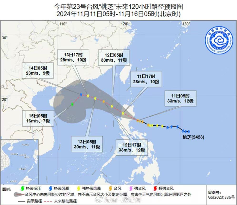 另外,第23号台风“桃芝”已于10日夜间加强为台风级,将于11日白天在菲律宾吕宋岛登陆,12日移入南海东部海面,强度缓慢减弱,逐渐趋向海南岛东部到广东西部一带海面。