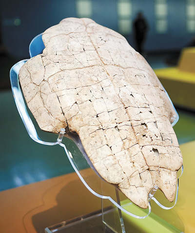 河南安阳殷墟博物馆展出的刻辞甲骨。甲骨文是迄今为止中国发现的年代最早的成熟文字系统,具有重要文化价值。