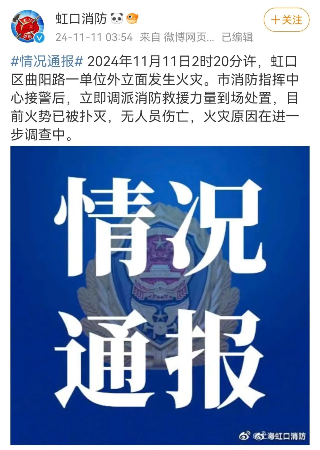 虹口消防发布情况通报