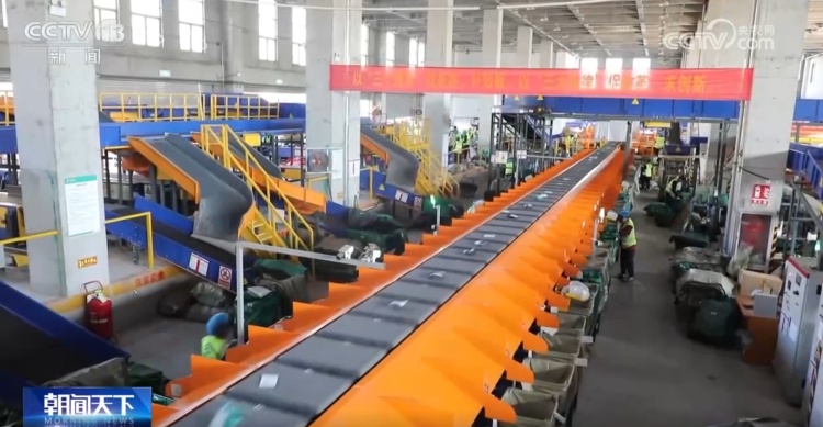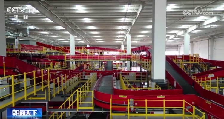 除了无人快递车外,一系列高速分拣设施也在分拨环节大显身手。大量纵横交错的传送带在空中架起“立交桥”,通过机器扫描包裹面单,自动确定即将发往的目的地。