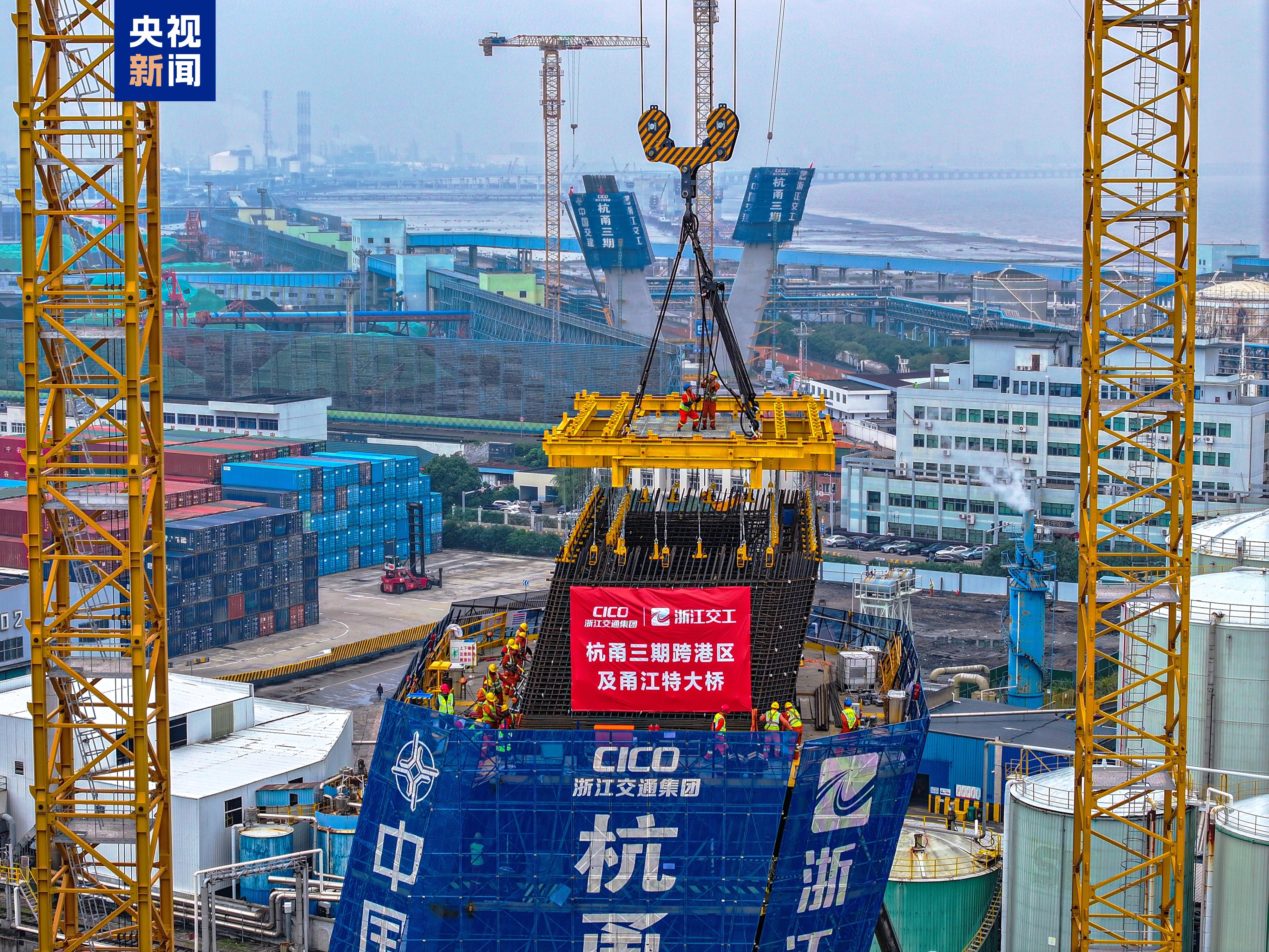 11月11日上午,杭甬复线宁波三期项目甬江特大桥施工现场,一节重达67吨的钢筋部品被稳稳吊起,并精准安装到主塔预定位置,标志着这一世界级跨江大桥全面进入部品化施工阶段。