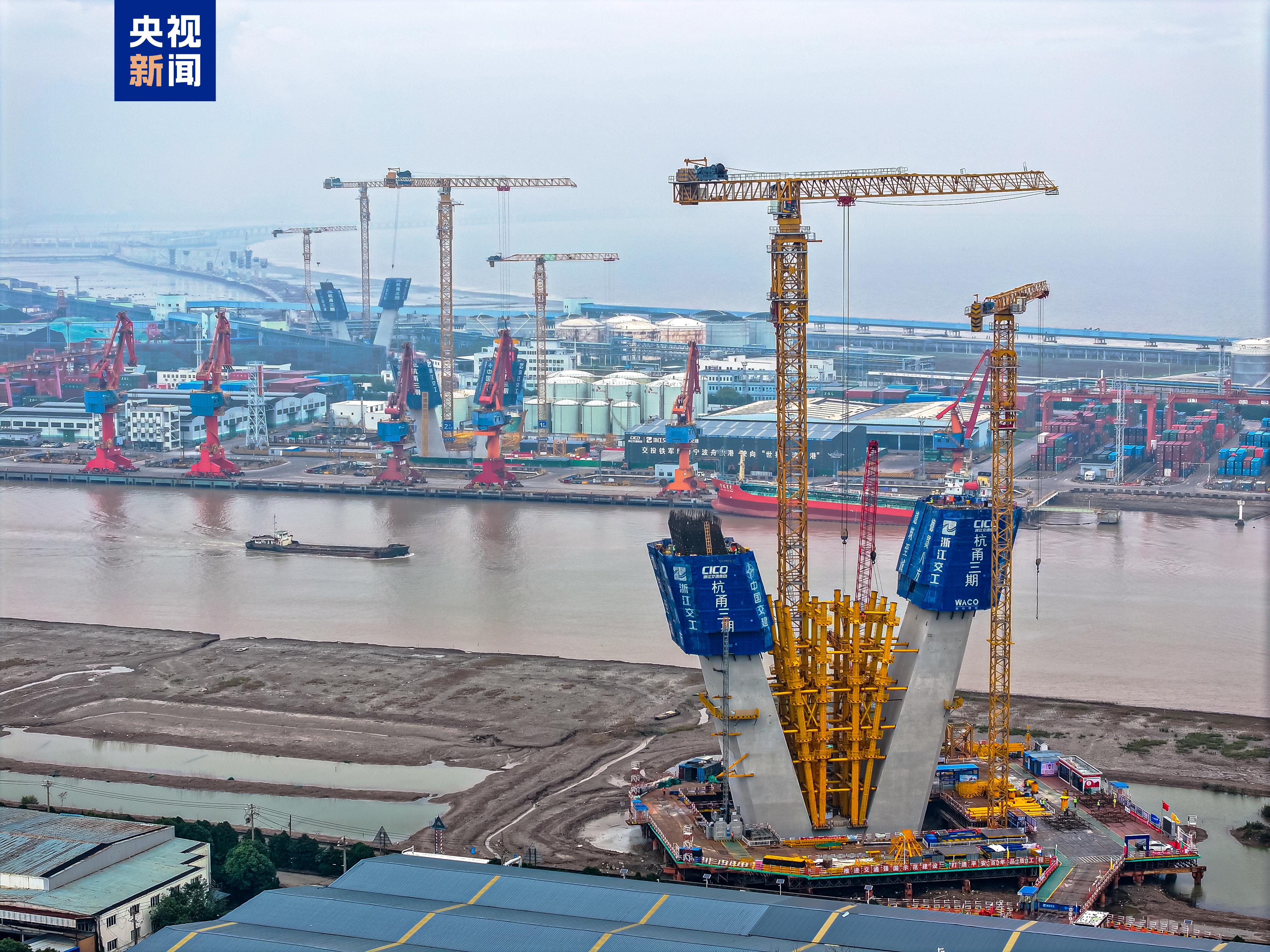 杭甬复线宁波三期项目是国家高速公路杭甬高速复线的重要组成部分和宁波舟山港集疏运的重要通道,全长26.15公里,采用双向6车道高速公路标准建设,设计时速100公里,预计2027年建成通车。甬江特大桥是杭甬复线宁波三期项目的关键控制性工程,全长1730米,设计采用大倾角钻石型塔身,是目前世界上最大跨径的不对称三塔斜拉桥。