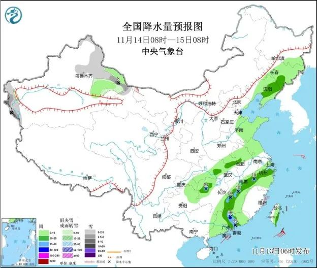 降水预报:13日08时至14日08时,广东中部和东部偏南地区有中到大雨。