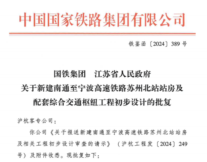 日前,《新建南通至宁波高速铁路苏州北站站房及配套综合交通枢纽工程初步设计》获国铁集团和江苏省人民政府联合批复,标志着苏州北站的开工进入倒计时。