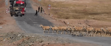 青藏公路上,过往车辆远远停靠,主动让行经过的藏羚羊。一度罕见的各类高原珍稀野生动物,如今频频现身。