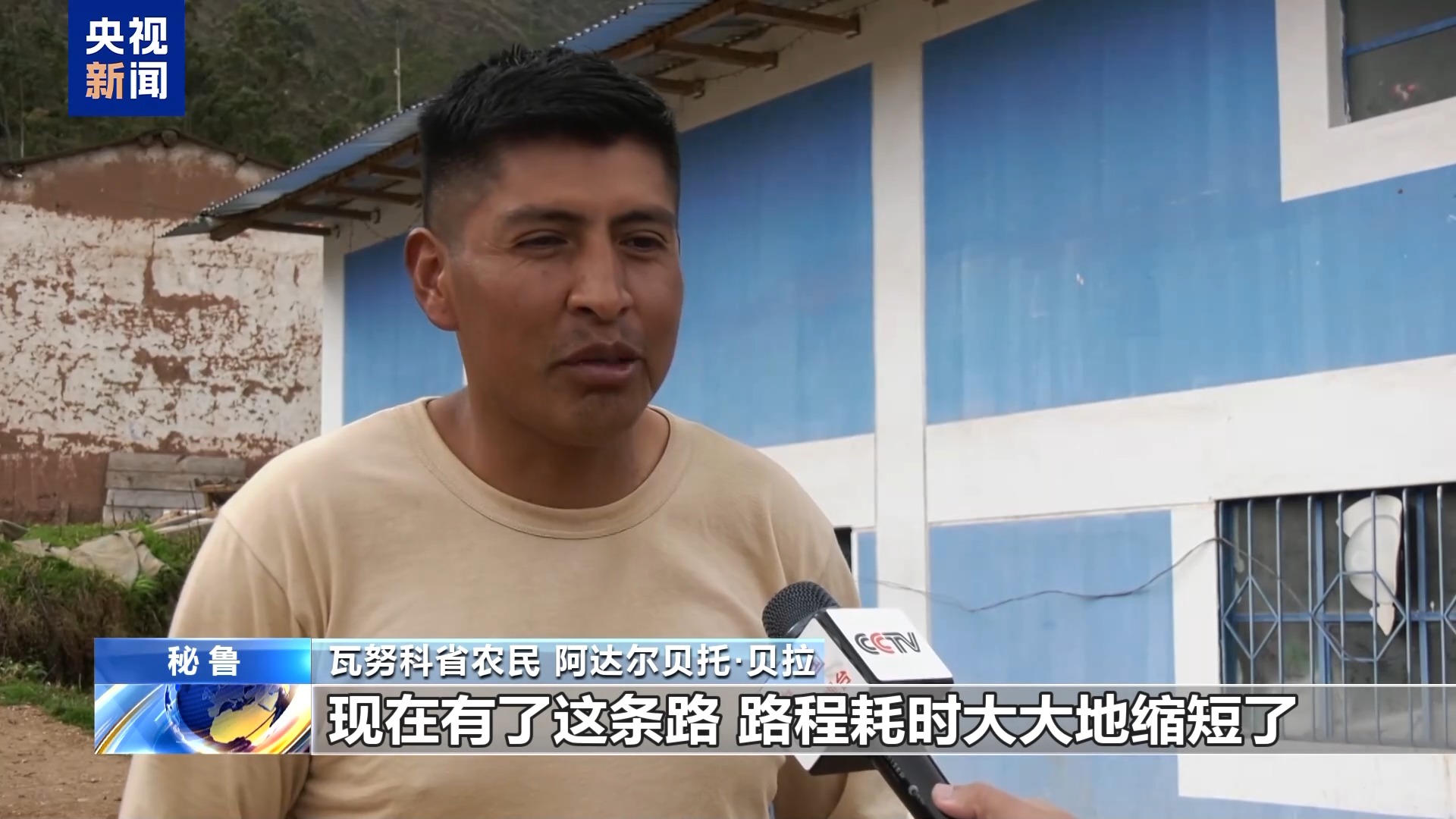 瓦努科省农民 阿达尔贝托·贝拉:我是一名农民,土生土长的马铃薯种植户,我们也会把瓦努科出产的东西卖到首都利马去。以前这里只有一条小路,路上耗费的时间很长,现在有了这条路,路程耗时大大地缩短了。