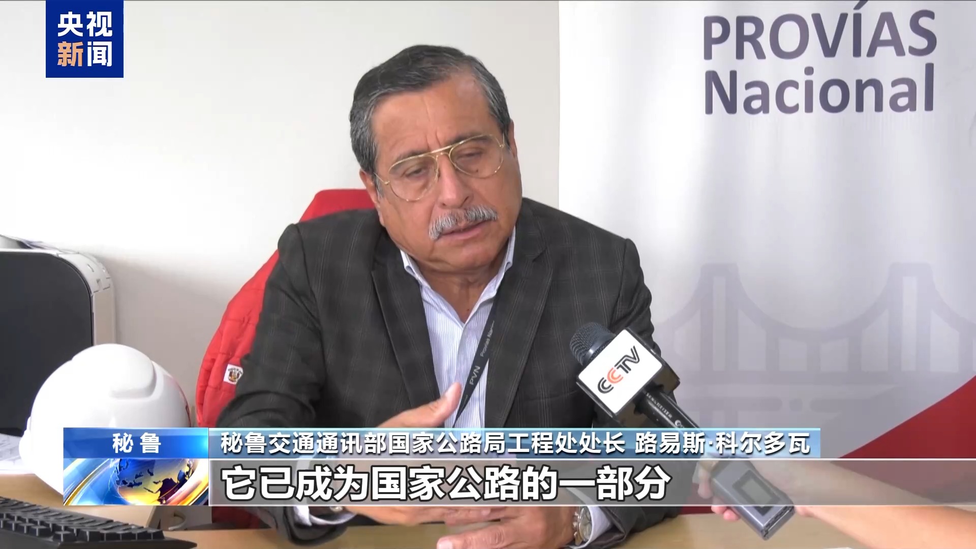 秘鲁交通通讯部国家公路局工程处处长 路易斯·科尔多瓦:这条公路是非常必要的,它已成为国家公路的一部分,让山区生产者更容易、更好地从他们的产品中获得更多收益。
