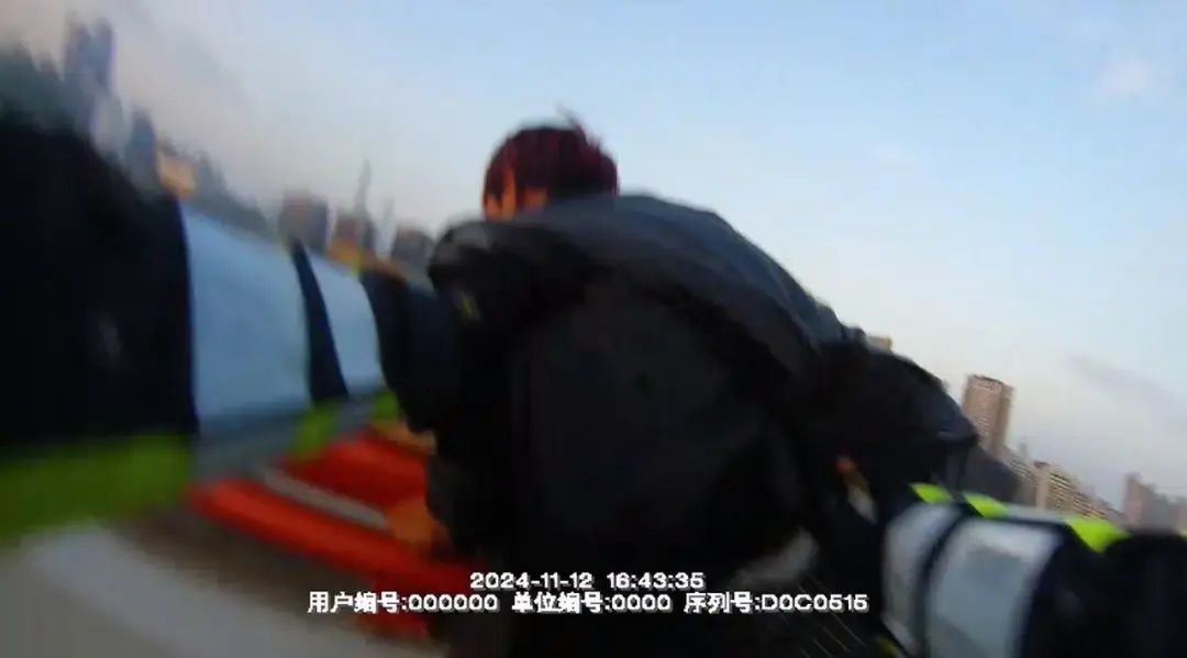 接到指令后,民警季鑫宇迅速驾驶警用摩托车前往,其间南浦大桥上有一位拖车驾驶员看见该男子在高架上行走,试图拦截该男子,但被其挣脱后继续向前行走。