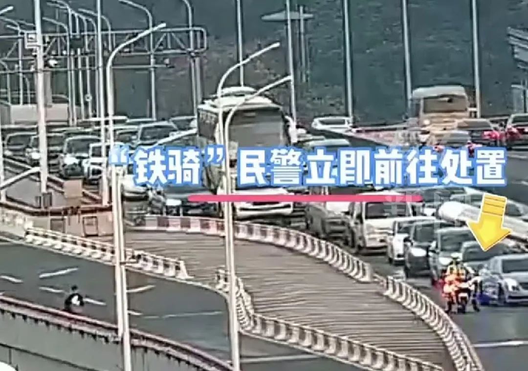 2024年11月12日16时32分许,浦东交警支队指挥室在晚高峰道路巡查过程中,发现在南浦大桥杨高南路匝道上正有一名男子徒步往高架上行走,这一举动引起了指挥室民警的注意,立即指令浦东交警支队铁骑中队民警季鑫宇前往处置。