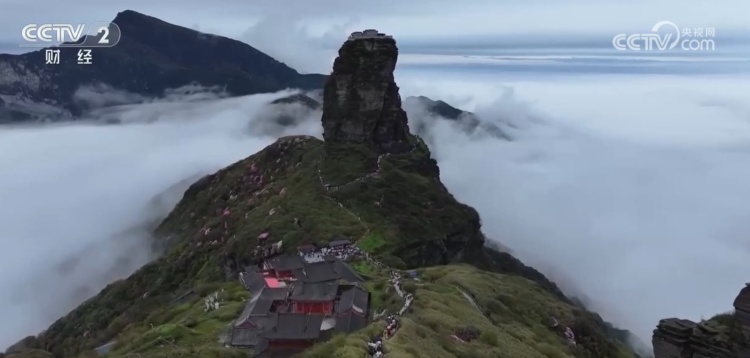 在梵净山景区,登高赏景仍是不少团体游客的热门选择。