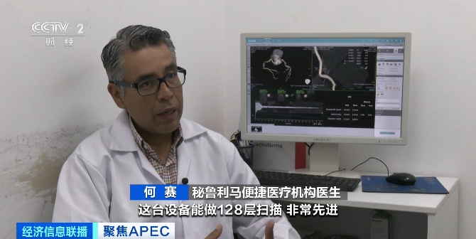 秘鲁利马便捷医疗机构医生 何赛:它太好用了。这台设备能做128层扫描,非常先进。再加上人工智能技术,对诊断心血管疾病带来很多便利。