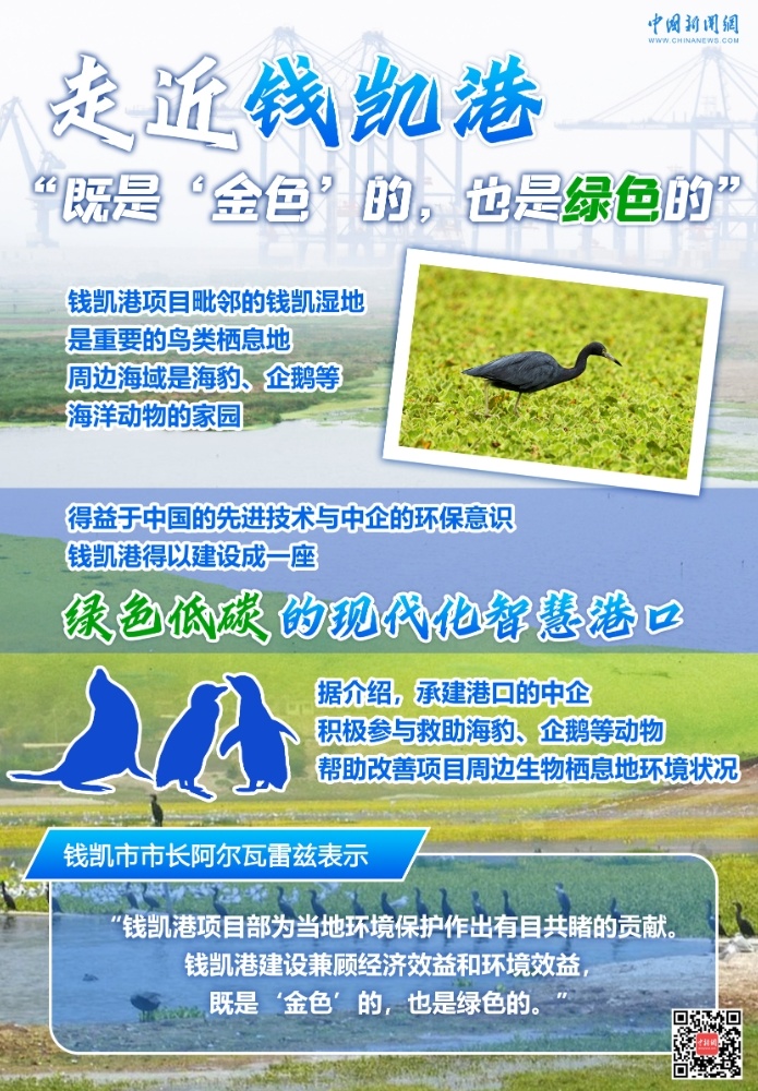 中远海运港口秘鲁钱凯公司方面表示,承建港口的中企在施工中注意对噪音、灯光、扬尘的控制,尽量降低对这些湿地“居民”的影响,并积极参与救助海豹、企鹅等动物,帮助改善项目周边生物栖息地环境状况。