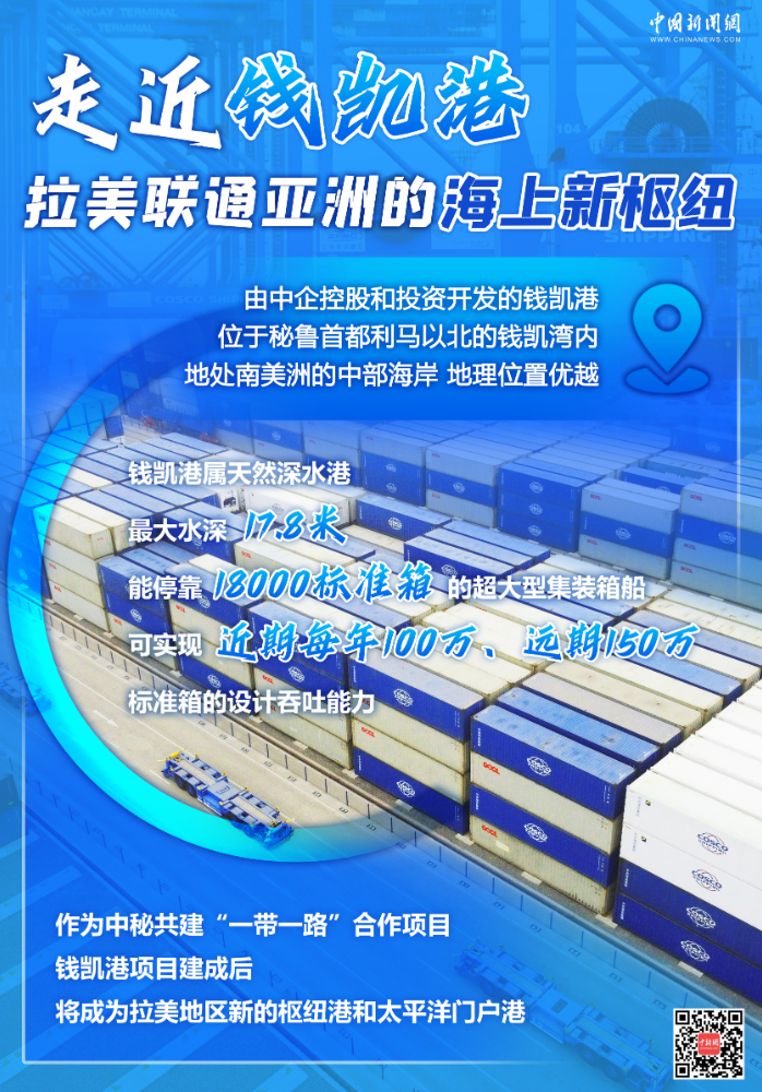 钱凯港项目是中国和秘鲁共建“一带一路”合作项目,建成后将成为拉美地区新的枢纽港和太平洋门户港,可大幅缩短秘鲁到亚洲的直航时间。