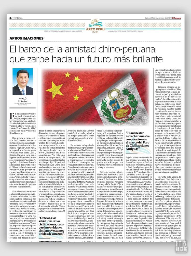 “我谨向您发出最热情的邀请,希望您拨冗出席2024年亚太经合组织(APEC)领导人非正式会议,并对秘鲁再次进行国事访问。”去年11月,秘鲁总统博鲁阿尔特在旧金山向习主席发出诚挚邀请。