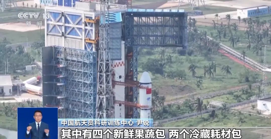 中国航天员科研训练中心 尹锐:按照我们总体的计划流程,我们在负11小时的时候要进行临射货包的安装。其中有四个新鲜果蔬包,两个冷藏耗材包,还有两个实验用品包。这次我们的新鲜果蔬包从负11小时装船,到发射、一直到对接,我们能够实现24小时内到达,这也是我们这次货运飞船的保障物品的创新。