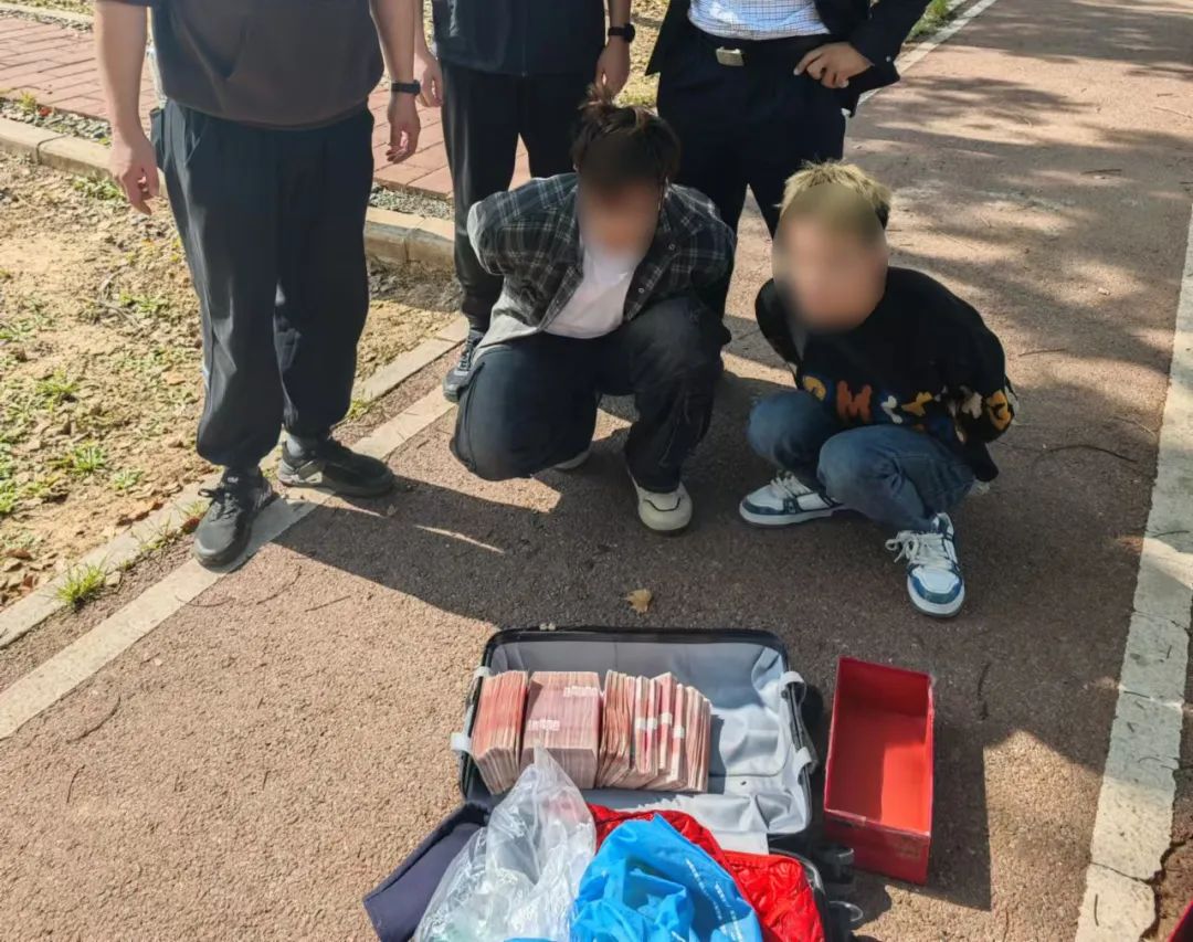 几分钟后,货拉拉抵达交易地点,嫌疑人汪某打开车门的一瞬间,被“神兵天降”的民警吓了一跳,立即束手就擒。与此同时,阮开瀛带领辅警周偲将苏A牌照的嫌疑车辆截停,抓获嫌疑人付某。随后,民警查获其行李箱和车内的现金赃款共计19万元。