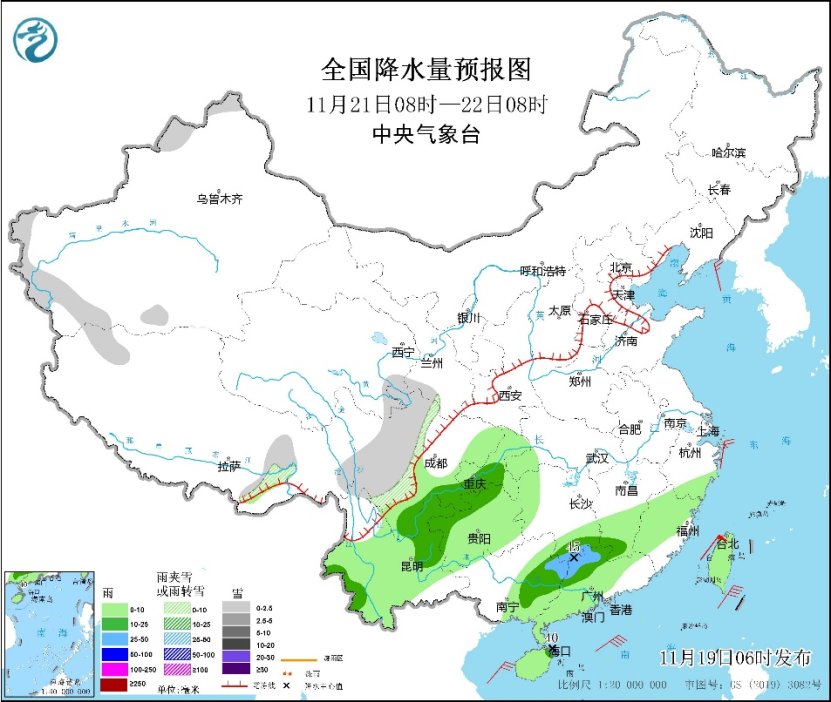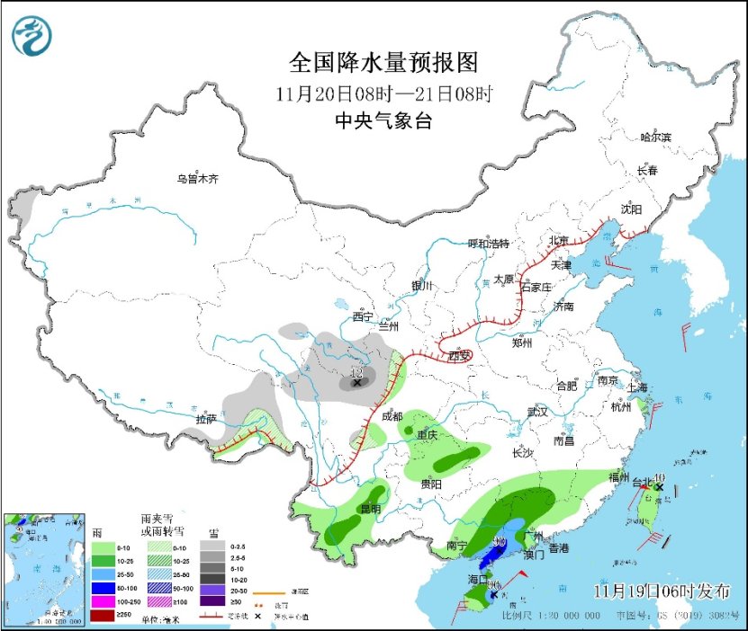 19日至21日,广东西部和南部、广西东部、海南岛、湖南南部、江西南部、福建东南部、台湾岛等地部分地区有中到大雨,局部暴雨。公众需注意防范风雨天气对出行交通等的不利影响,并警惕局地强降雨可能引发的次生灾害。