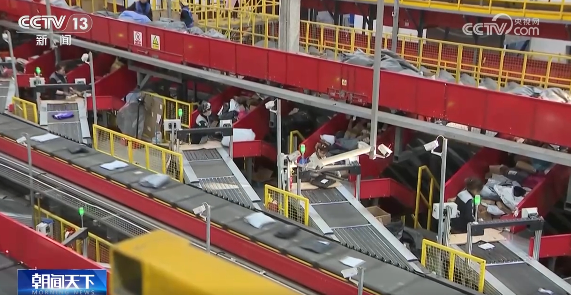 在湖北襄阳,快递公司使用的智能分拣设备无需人工逐一扫描装袋,便能自动识别快递信息,并投放至对应片区的快递筐内。